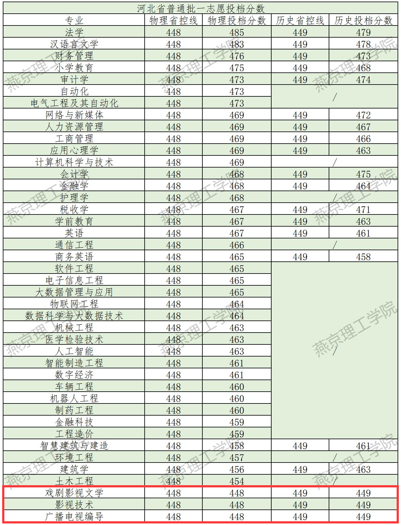 2、2023燕京理工学院艺术类录取分数线